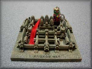 ホント、一ヶ月がたつのってあっという間ですね。海外旅行もあっという間に終わりますわ。「どこへ行くかは15日のエッセイをお楽しみにしてください」なんて書いたけど、ピカチュでバレバレじゃん。行ったところは「カンボジア」ですわ。台湾のツアーで。台湾は正月休みなわけです。『新年快樂』なわけです。そんなわけで、写真はカンボジア土産のアンコールワット模型。それに乗ってるのが金門土産のシーザー。どっちも台湾ツアーのお土産ってことで。さてさて次はどこ行こうかな〜。カンボジアエッセイは15日のエッセイをお楽しみにしてください。そうそうレンタルサーバを変えようと思いますので暫くお休みになるかもしれません。現在のレンタルサーバですが、この前のSQLウィルス騒ぎでの影響かどうか知らないけど高い金だしてるのに1日中止まってたし、いっそめちゃ安サーバにしようと思ってます('03/02)。