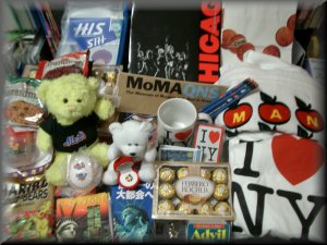 いやー、ひっさしぶりに海外旅行行けましたわ。思えば6月はセブ島、7月はタイ、8月はスリランカと月1企画をしていたのにどれもこれも企画だおれでした。9月こそはといどんで、行くことができたわけです。思えばおとんど僕一人で進めた旅行です。あとの2人はただついてきているだけって感じ。それでも準備ってのも面白いものです。英語ができるわけでもないのにインターネットでチケット予約です。メジャーは国際便で送ってくれたのでよかったのですが、ミュージカルはボックスオフィスです。前回、友達がやってくれたので、要領はわかります。それから自転車ツアーは日本語でメールやりとりするだけだったので簡単でした。問題は人数がなかなか集まらなかったことですね。でも、前回やれなかったことがほとんどできたって感じで、これぞリベンジ旅行でした。さーて、次はどこのリベンジするかなー(笑)。やっぱし、SARSで行けなかった中国ですかね。それともパスポートなくしてキャンセル料払った後輩に自慢するためにオーストラリアかなー。あー、企画するのって楽しいー。そんなわけで、写真は恒例のお土産の写真。最近はお土産をいっぱい買うよーにしてるけど、誰に渡すかで悩みます。そんな10月ですが、またまた部署が変わります。めんどくさー('03/10)。