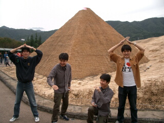 世界遺産を見よう!そんな企画です。 明らかに朝に弱いと思われる110くんですが、 なんと6:50には家を出たとのこと。7:00は確実に 越えると踏んでいたので、よい方向に転がってますね。 しっかし、186くんを拾ったところでテンションダウン している状況らしい。夜中まで友達と遊んでいたとのこと、 明らかにVitzで寝ることを計算に入れている行動です。 そんで、僕の寮まで来る段階で渋滞気味。 あと30分は寝られたなーなんて思いつつ、到着。 それでは、久々に3人集まってVitz旅行スタートです。 高速までは順調なペースで進んでいます。 ここで186くんの久々の「うまれる」の声が、 しっかし既に渋滞開始でサービスエリアは恐ろしい車の列。 次のパーキングは比較的空いており入りました。 ここで朝飯を各自バラバラに取るのでした。 186くんはさすがアメリカ帰りです。アメリカンフランク。 | |