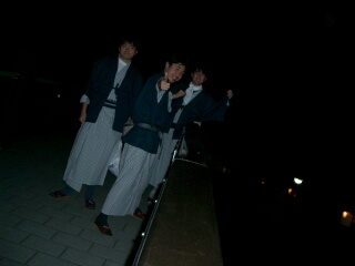ここで、CASIOのEZ3の機能をフルに(?)生かした、 写真撮影大会。EXLIMには左半分と右半分を撮って 補正して合成するという機能がるのです。 この機能を使えば左と右に自分を写すことができるのです。 って、なんでエジプトゾーンでこんなことする必要が あるのかよーわかりませんが、その時のテンションです。 3人とも撮り終えて満足まんぞうです。 さて、鬼怒川温泉で入浴する予定をたててましたが、 そんな時間は無いのでさっさと旅館へ向かうことに。 186くんは寝に入りました。鬼怒川を越えて、 川治を越えた山道に揺られ、民宿到着です。 民宿なんて始めて泊まりますが、悪くないですね。 橋の下の無料の温泉に入って消灯。 | |