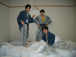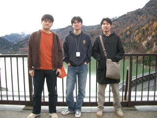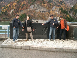 はい、翌日です。3人とも前日、目覚まし携帯をセット していたようですが、僕は携帯の目覚ましを切った 夢を見たため、いつまでもなり続けています。 自分の携帯がなってるのに、うっさいなー、 とか思いながら自分の着メロ聞いてました。 さて、8時半の朝食です。朝の温泉を浴びてから、 部屋に戻ると、ふとんを畳むおばさんにあおられ、 9時半に出発です。チェックアウトを済ませて旅館の 前で集合写真を撮ってもらい、いざ黒部ダムへ。 ここで、大問題発生。てか、ショック死。 予想していない張り紙が張ってあります。 「〜10月24日、今年度の放水は終了しました」 10月31日に放水しないことになんの 意味があるんだ。いやがらせだ。 放水の無い黒部ダムの価値は例えるなら額に「中」と 書いてないラーメンマン。 つまり黒部ダムじゃなくて「ダム」だよ。 悲しいけどこれって富山旅行なんだよね(ガンダムネタ)。 |