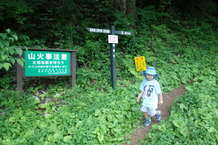 高川山にはツキノワ熊が住んでいるらしいので、そこら中に看板があります。岳は「熊やーだ」と泣きます。