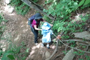 大人でも辛い登りですが、かわいい子には旅をさせろで抱っこなしで歩かせます。まー、島村さんの手助けは、