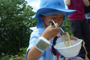 トマトが食べられないので醤油をかけてキュウリうどんを食べます。岳もトマトやだと素うどんを食べます。