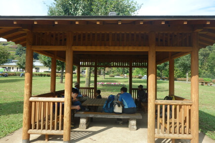 本日は山頂へ行きませんので、この休憩所がゴールです。ここで山ごはんを作ります。各自持参した