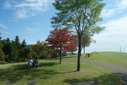 危うく、あいかわ公園ふれあい広場の東屋で食事して終わるところでしたが、南山の休憩所を目指して登ります。