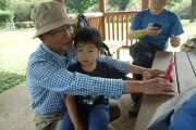 せがむので、宮内家はここに残って、残りのメンバーは半原からバスで帰ります。帰りのバスもサッカー