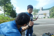 さて、行きと同じ道を戻って、あいかわ公園に到着です。ここで解散です。岳はこども広場で遊びたいと