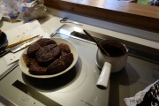 ソースは鈴木家にあるウスターソースとケチャップを混ぜて煮込んで作ります。