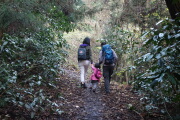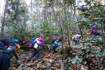 低山と聞いていた嵐山コースですが、いきなり勾配の急な登りが始まります。2歳8ヶ月連れの大野くんは、