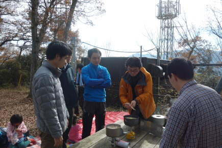 そんなわけで、山頂に到着しました。落ち葉がいっぱいです。本日の料理は鍋料理の予定でしたが、