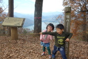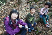 子供たちは落ち葉と枯れぎ木で遊びます。相模湖の老人ホームで買った100円のピカチューも山頂へ