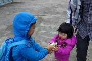 サングさんが荷物をもってくれたので、ちょっと楽になった大野くんでした。桜子ちゃんも歩いてくれて、
