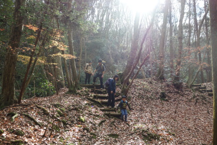 下山です。落ち葉が多くて滑ります。里奈さんも一尻もちしましたが、落ち葉のクッションで助かります。