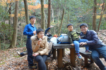 キッズは岳一人なので、ベンチは足りますが、敷物を敷いてくれと言うので、敷物でくつろぎます。