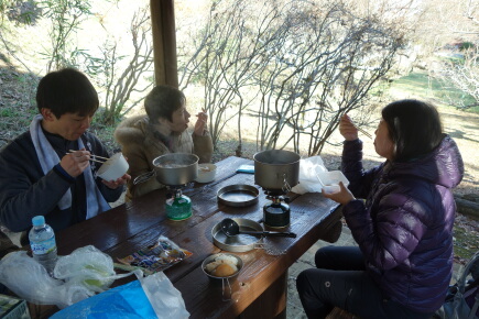 吉沢の池には東屋があります。山頂で山ごはんを作る予定でしたが、予定を変更してここで作ります。
