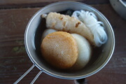 本日の山ごはんは恒例の闇おでんです。各自が1品をもってきます。ベースのおでんは宮内が用意しました。