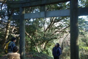 鷹取山の山頂です。標高が書かれた標札も無く、神社が山頂です。日差しが邪魔で顔が見えません。