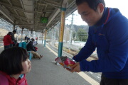 咲空ちゃん以外は販売機に夢中な鈴木家ですが(笑)、駅でお別れです。王さんの長い旅が再び始まります...。