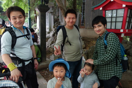 寺の階段はベビーカー参加に厳しいところです。翔太くんは頑張って歩きましたが、時間がかかります。