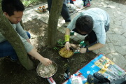 そして、山頂に到着です。王さんと常さんに場所取りしてもらってましたので、敷物を敷いて山ごはんタイム。