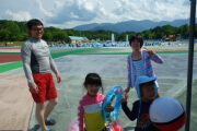 さて、子供たちのメインイベントです。前回の暑いお遍路で泣いた岳への餌としたのがプールです(笑)。