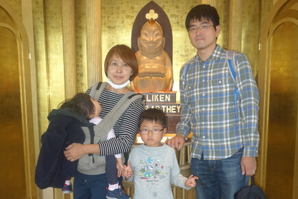 天王寺動物園を堪能してから、通天閣に行きました。連休だったので、激混みでしたが家族写真が撮れました。