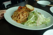 食べたい、パスタが食べたいと言っていたので、念願のパスタです。最近、よく食べます。大阪ストレスかな。