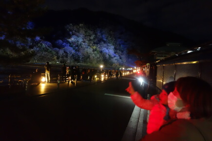 ライトアップを楽しんだ後は、ホテルへの長い道のりです。嵐山駅は散在しているのです。
