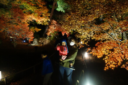 食後はすっかり暗くなってしまいましたが、宝厳院のライトアップが見られないかと行ってみることにしました。