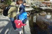 本日も綺麗です。カエルの像があるお金を投げる場所も3年前に来た記憶があります。岳がお金を投げます。