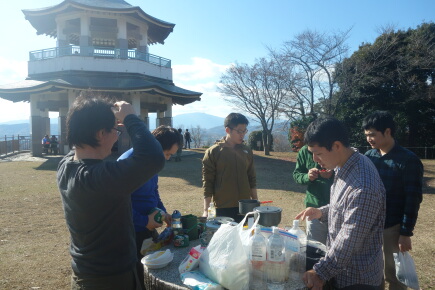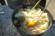 ほうとうです。始めは各自持参にしていたのですが、大野くんが山ごはん担当を引き受けてくれました。