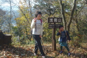 権現山の山頂です。逆光ですがなんとか日陰ポジションを探しました。鈴木姉妹は手をつないでおります。
