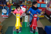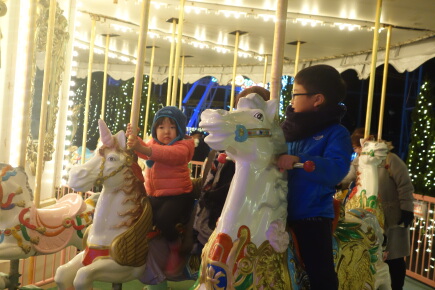 中は遊園地と併設しており、子供たちはメリーゴーランドに乗ります。