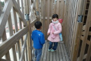 その後、遊園地ゾーンで息子が迷路の施設で遊び、娘はトランポリンで遊びます。