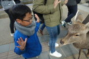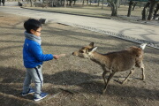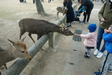 すっかり、鹿に慣れたようで、岳も触ることができてます。ただ、鹿せんべいを与えると