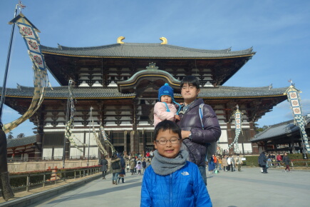 東大寺の中は人がいっぱいです。最近は外国人が多いですね。大阪に住んでいても