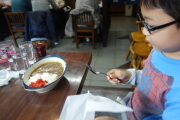 さて、お昼ご飯です。うどん屋へ入りました。岳は相変わらずカレーが食べたいというので、