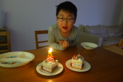 家に帰って、お好み焼きを食べて、4分の1成人式ってことで再び5歳のお祝いケーキをいただきました。