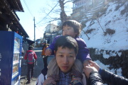 ケーブルカーで登ると雪がいっぱい残っております。ここが御岳平(831m)であることを初めて知りました。