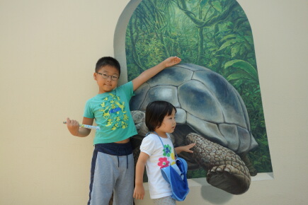 変な魚コーナー、パンダイルカ、ジュゴン、ドクターフィッシュ、トリックアートを観て、