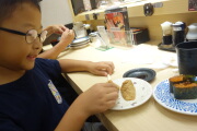 台風12号の影響で近鉄の特急は運休してました。出発まで3時間半待ちです。回転寿司を