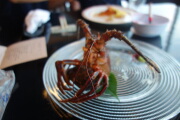 回転展望レストランでコースのお食事。贅沢なひと時。子供たちはオムライスです。
