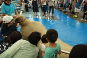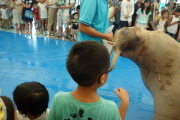 観ました。大きなセイウチを2人とも怖がらず触っておりました。平日にしては混んでますが、