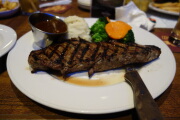 奮発してフライデーズの高いステーキを食べました。子供たちはキッズバーガーです。