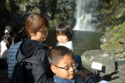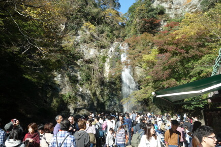 そして、箕面大滝に到着。相変わらず綺麗です。お天気がよいので虹が見えます。