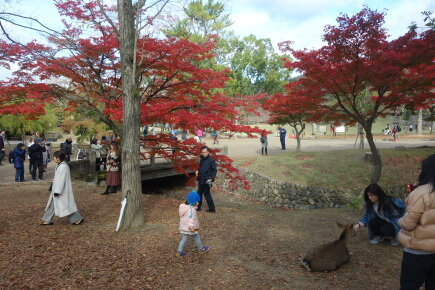 さすが紅葉シーズンですので人は多いですが、鹿の方が多いです。でも東大寺の付近は