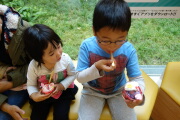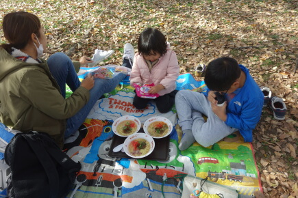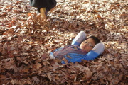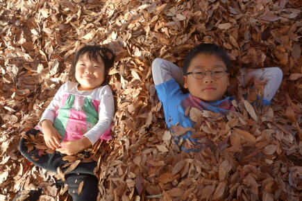 紅葉まつりで落ち葉のプールがあって2人とも寝てました。ここの落ち葉にかなりはしゃぐ二人。