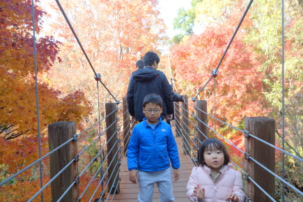 紅葉が綺麗なところでアスレチック的なつり橋コースでハイキングをします。