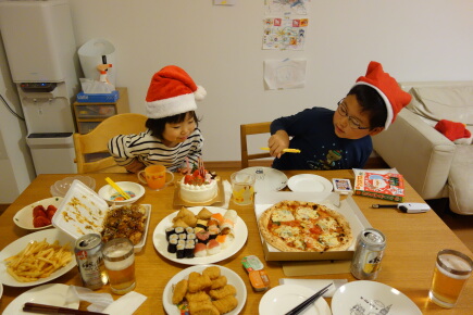たらふく食べてしまったので、何を食べてクリスマスイヴをお祝いするか家族会議。